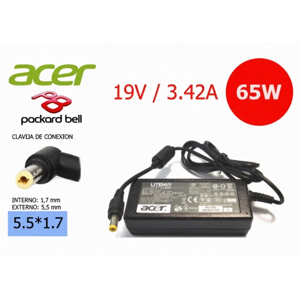 Carregador 19V 3.42A 65W 5.5*1.7mm pino central Acer PA-1650-86